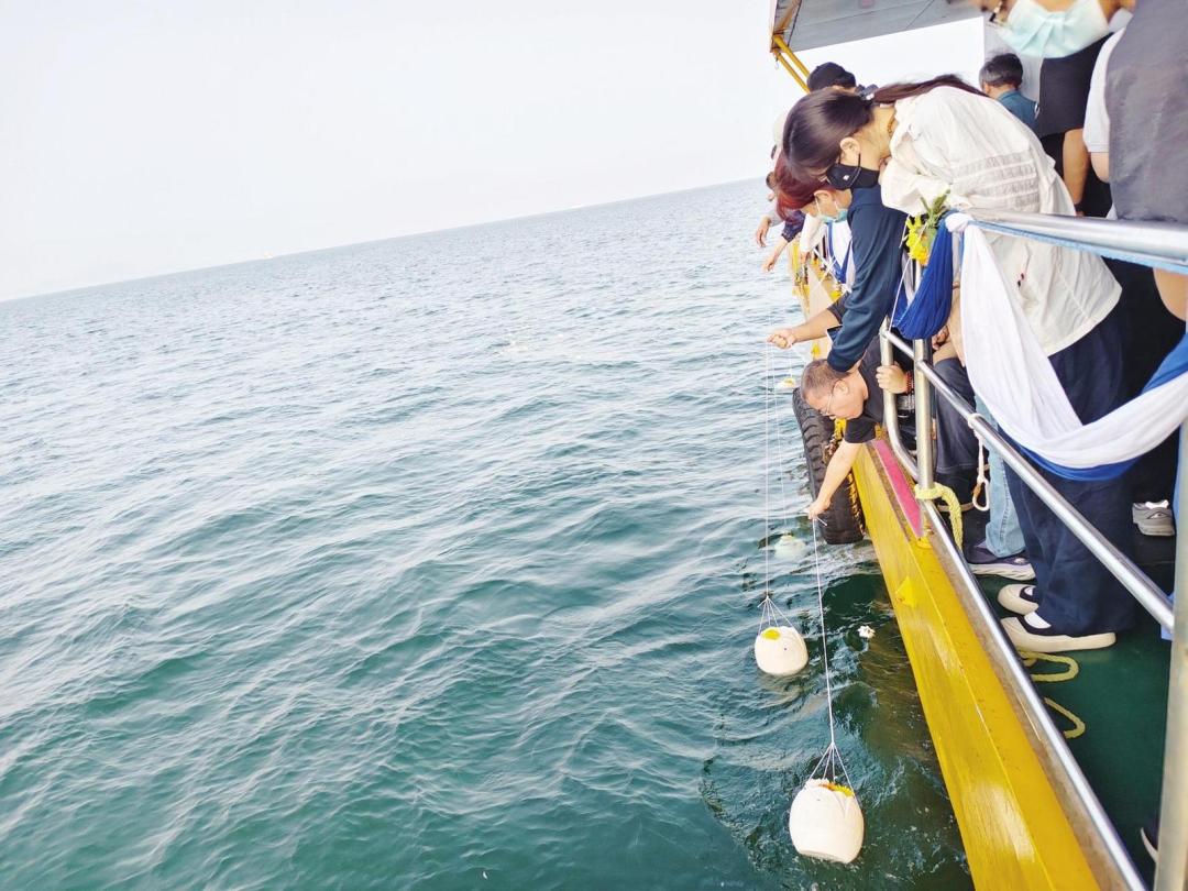 伴着悠长的汽笛声,驶到指定纬度和指定地点,船只停了下来。没有爆竹、烟雾,没有纸屑、香烛,伴随着音乐,逝者的家属将鲜花撒向大海,再缓缓放下可降解骨灰罐。看着亲人的骨灰渐渐远去,不少家属泪洒现场。返程启航,众人集体向大海三鞠躬。