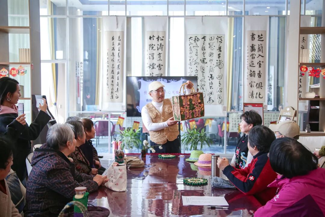 活动现场,多位非遗传承人各展绝活,让居民们近距离感受传统技艺的独特魅力。蓝关戏代表性传承人季祥林、季玉玲讲授蓝关戏的渊源、特征、代表作以及与其他戏曲的不同,播放蓝关戏《四知太守》经典选段,婉转悠扬的唱腔引得台下阵阵喝彩,不少居民跟着轻声哼唱;莱州草辫代表性传承人原广宗、面塑代表性传承人李秀艳、剪纸代表性传承人陈淑香分别进行现场教学,手把手指导居民体验传统技艺;吴式太极拳代表性传承人陈东良带领大家练习基础招式,一招一式尽显太极韵味;《四知堂的故事》代表性传承人徐敏生动讲述传统故事,引发居民们强烈共鸣;传统医药代表性传承人王俊豪也来到现场,为居民们提供健康咨询服务。