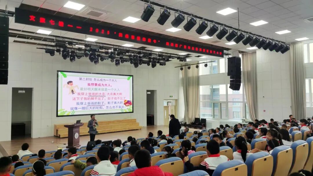 紧接着,邹老师转向另一部提名作品《给妈妈的一百万封信》,以“读信”为媒介,开启一场亲情与想象的对谈。她现场展示了这本书的独特设计——书中暗藏玄机,打开内页竟藏着一个真实的信封,展开便是一封充满温情的信笺。这个精巧的设计让孩子们惊喜不已,瞬间拉近了与书本的距离。随后,邹老师邀请十余名学生轮流朗读信中充满童真的片段——“怎样成为大人”“头上长出一棵树”……孩子们用稚嫩而真诚的声音,读出对妈妈的依恋、对世界的想象,也读出成长中细微而真实的困惑与喜悦。邹老师适时引导孩子们思考,激发他们表达自我、传递情感,现场洋溢着温馨与感动。
