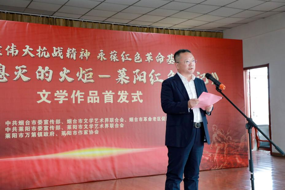 10月29日,《永不熄灭的火炬——莱阳红色印记》文学作品首发式在万第镇政府会议室举行。活动由烟台市委宣传部、烟台市文学艺术界联合会、烟台市革命老区促进会担任指导单位,莱阳市委宣传部、莱阳市文学艺术界联合会主办,莱阳市万第镇人民政府、莱阳市作家协会承办,来自烟台及莱阳两地相关单位领导、文学界代表等齐聚一堂,共同见证这部红色文学作品的发布。烟台市文学艺术界联合会党组书记宋作新、莱阳市委副书记郝华清分别上台致辞。