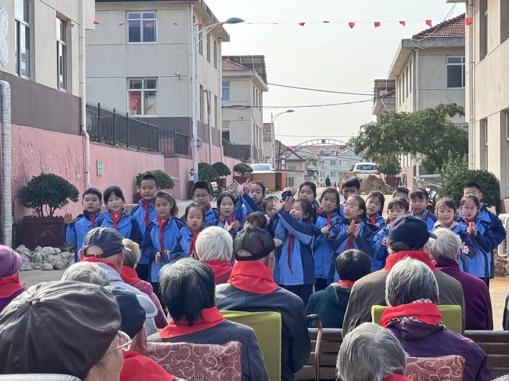 上午9时,身着整齐校服、佩戴鲜艳红领巾的同学们,在李虎、曹月新等老师的带领下来到养老院。10时许,活动在曹月新老师饱含深情的发言中拉开帷幕。同学们表演了手势舞《重阳》、歌曲《不要慌太阳下山有月光》、歌曲《听我说谢谢你》等节目。