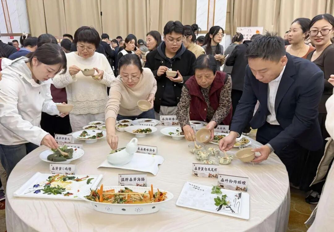 “桑海凝香宴”“当归炖羊肉”“百合烩虾丸”……活动中,一道道融合鲁菜风味与中医养生智慧的佳肴,引得现场群众纷纷驻足品尝。同时,现场还邀请烟台市和心意茶业、烟台中亚药业开设茶道文化、药酒文化展示区,开展可随时互动的“养生讲堂”科普,让参与者在视觉与味觉的双重沉浸中,感受中医药文化以更生动、更贴近生活的方式融入日常。
