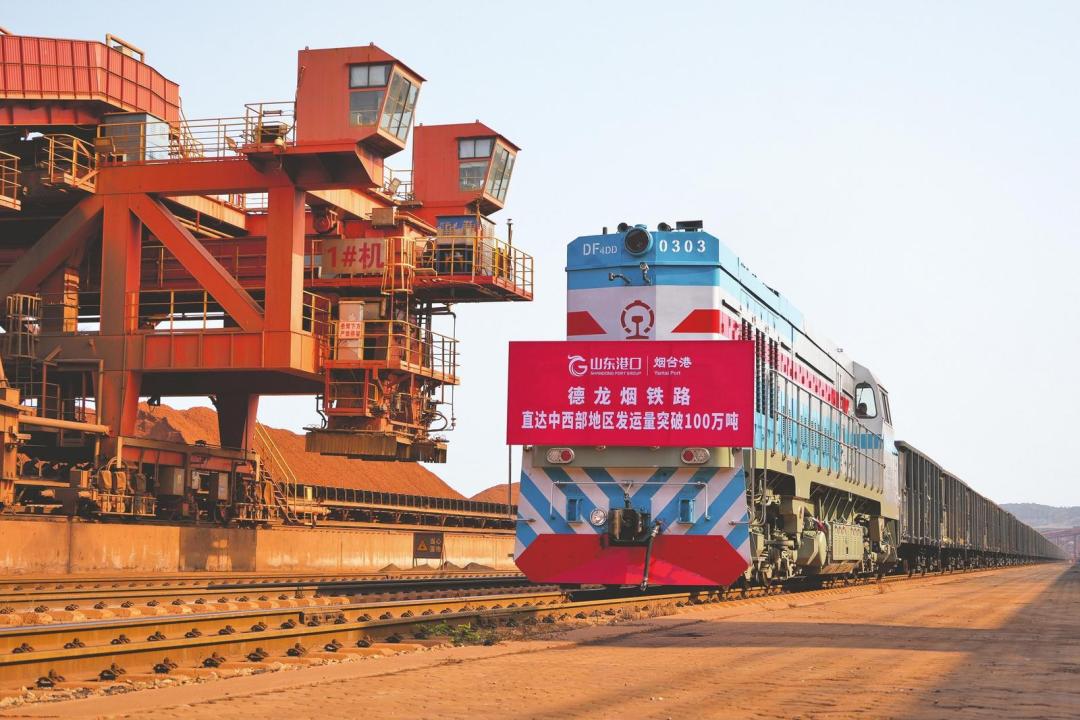 10月29日,随着一列装载着3000余吨几内亚铝土矿石的货物列车从山东港口烟台港始发,通过德龙烟铁路连接省外运输通道直通位于山西省的铝加工企业,德龙烟铁路海铁联运直达中西部地区发运量突破100万吨。