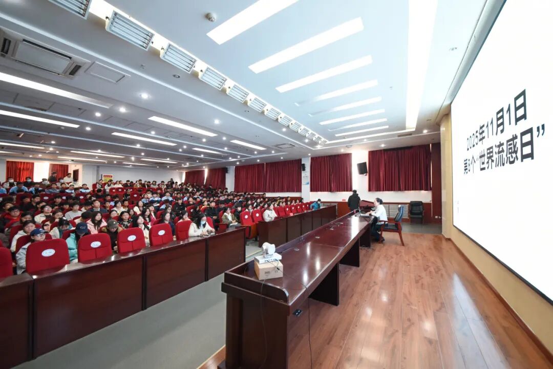 在烟台工程职业技术学院的阶梯教室内,一场别开生面的秋冬季传染病防控知识培训正在进行,现场气氛活跃,掌声笑声不断。
