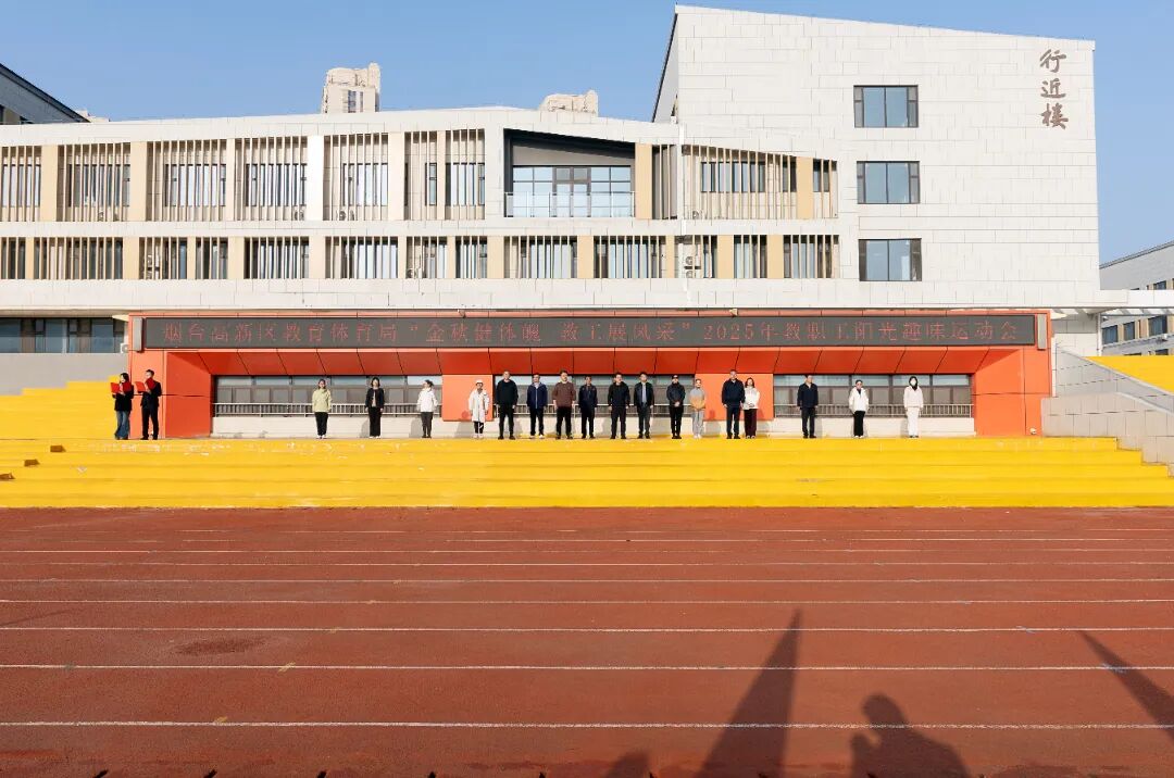 11月1日上午,烟台高新区教育体育局在杏坛中学操场举办了以“金秋健体魄 教工展风采”为主题的教职工阳光趣味运动会。来自区教体局机关及各中小学、幼儿园的十五支代表队、近六百名教职工踊跃参与,共享运动乐趣。