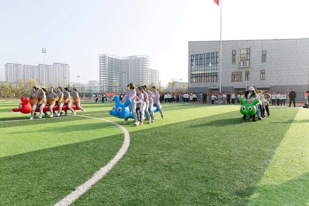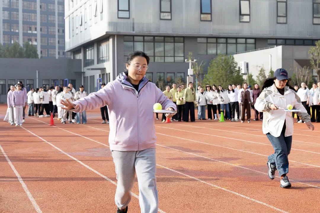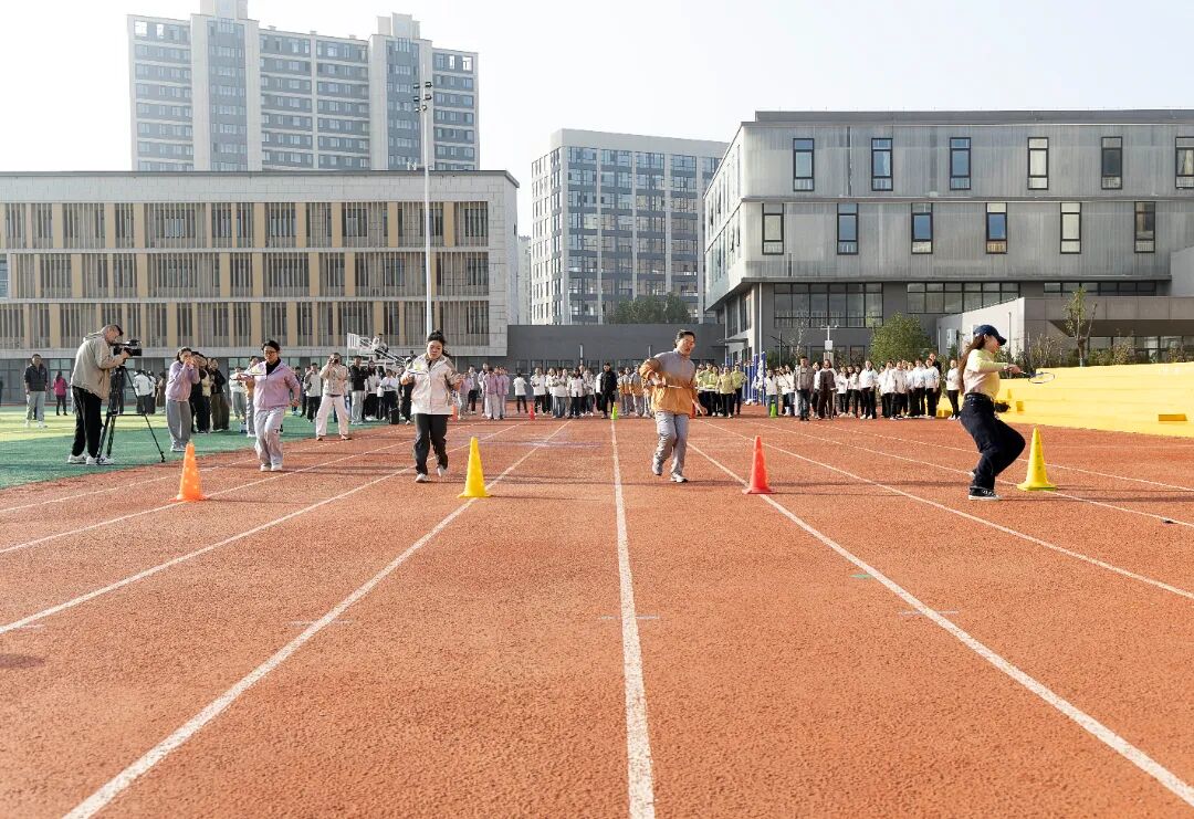 本次运动会注重趣味性、协作性和参与性,精心设置了多个集竞技与娱乐于一体的比赛项目。既有考验个人技巧与速度的“企鹅漫步”“摸石过河”,也有需要团队紧密配合的“8字跳绳”“托球跑接力”。赛场上,平日里严谨治学、辛勤耕耘的教职工们暂时放下工作的压力,化身活力四射的运动员,个个精神饱满,热情高涨。他们默契配合,奋勇争先,相互鼓励,场下观众的加油声、欢呼声、喝彩声此起彼伏,现场气氛热烈而欢快,汇成一片欢乐的海洋。