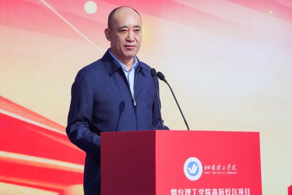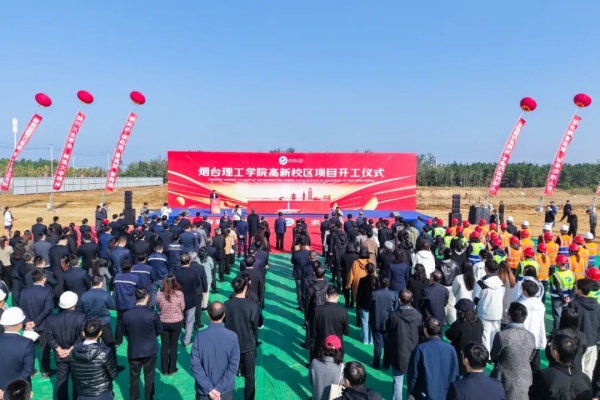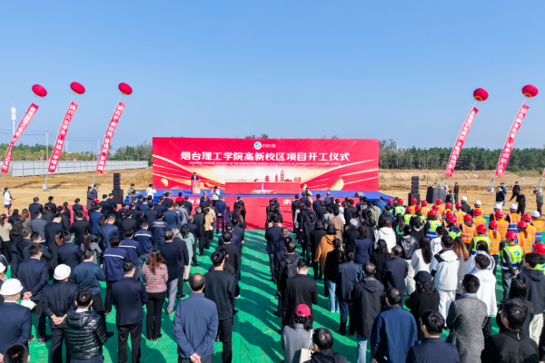 仪式现场,主席台主背景墙上“烟台理工学院高新校区项目开工仪式”的字样鲜明醒目,大型挖掘机、推土机与工程车整齐排列、蓄势待发,火红的气球飘带和旗帜标语迎风飘扬,现场洋溢着喜庆热烈的气氛。烟台高新区工委委员、管委副主任李如鹏在致辞中表示,烟台理工学院高新校区建成后,将为高新区注入优质教育资源,显著提升高新区高等教育综合实力,为高新区城市内涵、品位与形象的全方位提升增添强劲动能。高新区将全力支持项目建设,为学校发展提供全方位服务保障,让高校的智慧源泉充分涌流,创新成果加速转化,真正实现“校地同频、发展共振”。同时希望烟台理工学院以高新校区建设为契机,深度参与高新区发展大局,推动学科建设与产业需求精准对接、人才培养与区域发展紧密结合,为高新区跃升发展注入澎湃动能。