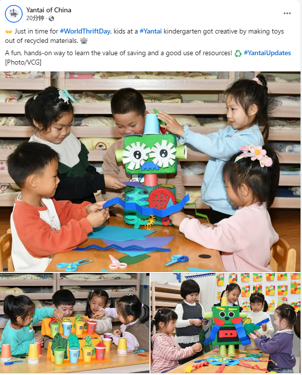 19.【烟台发布】山东烟台:儿童用废弃物品制作玩具迎世界勤俭日