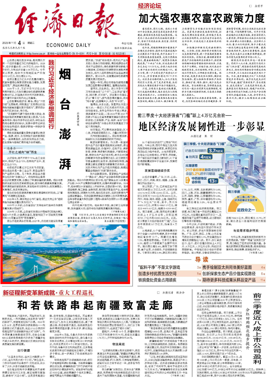 山东部署构建济南、青岛、烟台“三核引领”发展格局,特别提出“支持烟台打造绿色低碳高质量发展示范城市”,要求烟台在先行区走在前、作示范。