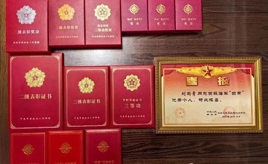 刘雨青于2020年高考以优异成绩考入海军工程大学,本科期间以专业第一成绩推免直博,在7个军队级以上竞赛中获佳绩,入伍以来共获得三等功1次、三级表彰1次、四有优秀学员3次、嘉奖3次、盖凡一等奖学金1次、校级奖学金2次,其全面发展的轨迹正是“四有”的生动实践。2025年9月,刘雨青又因工作突出,获得二级表彰1次,充分展现了新时代军队研究生的优秀风貌。