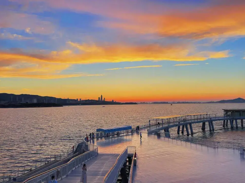伸进黄海400米的木栈道尽头