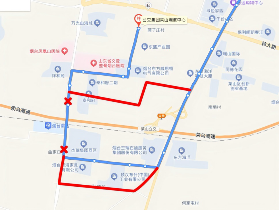 增加:杰瑞集团西区、烟台裕和、杰瑞集团总部、东方海洋保税库、黄海街道岱山工业园、盛泉创业中心、东马家都7处站点。