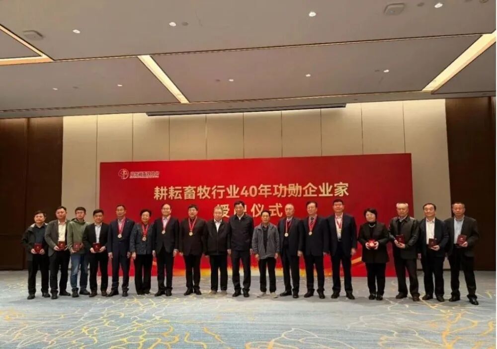 △山东省畜牧行业40年功勋企业家授奖仪式现场(左七为郑维新) 春雪食品供图