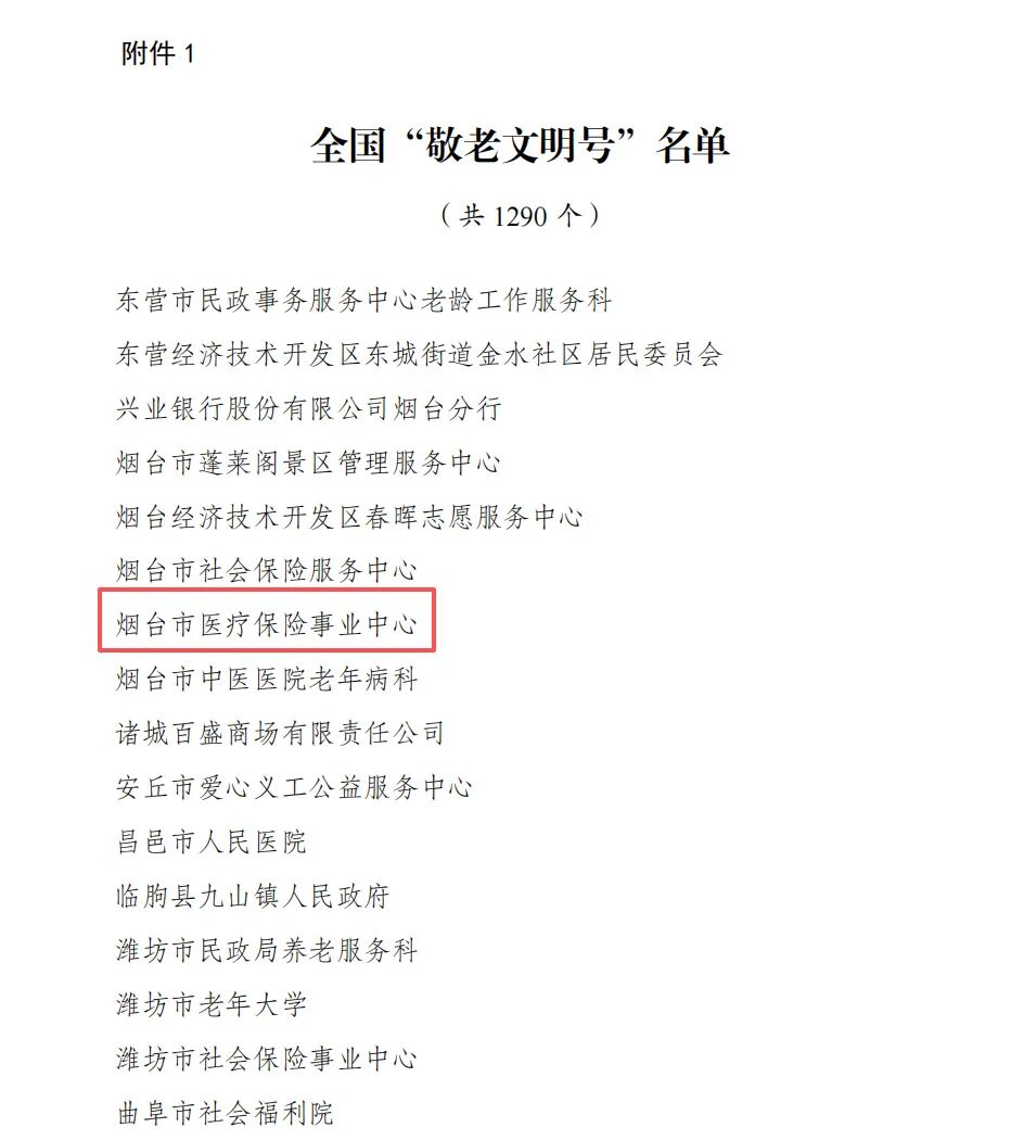 近日,全国老龄工作委员会办公室印发《关于表彰全国“敬老文明号”和全国“敬老爱老助老模范人物”的决定》,烟台市医疗保险事业中心被授予全国“敬老文明号”荣誉称号。
