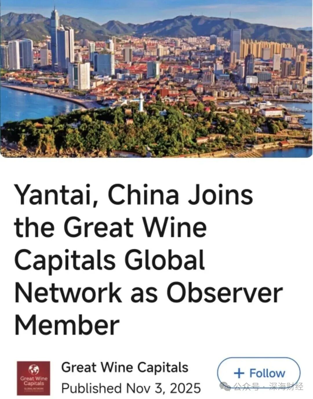 11月3日,在法国波尔多举行的世界杰出葡萄酒之都联盟(GWC)2025年度大会上,正式宣布烟台为联盟观察员城市,与法国波尔多、美国纳帕、澳大利亚阿德莱德、德国美茵茨、智利卡萨布兰卡等12个世界知名产区并肩,成为中国乃至亚洲首个参入这一全球头部葡萄酒组织的城市,让中国现代葡萄酒产业发祥地、亚洲唯一的“国际葡萄·葡萄酒城”“全球葡萄酒旅游目的地”“中国白兰地之都”的烟台再次迈入世界葡萄酒核心圈层,也彰显了中国葡萄酒产区在全球产业阵营中的话语权。