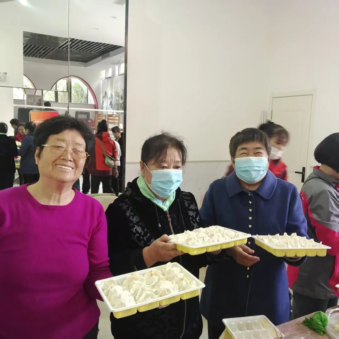 与此同时,社区工作者、志愿者和老人们围坐在一起包饺子,揉面、擀皮、调馅、包捏,动作麻利,配合默契。大家一边手上忙碌着,一边聊着家长里短,分享着生活中的趣事和养生心得。