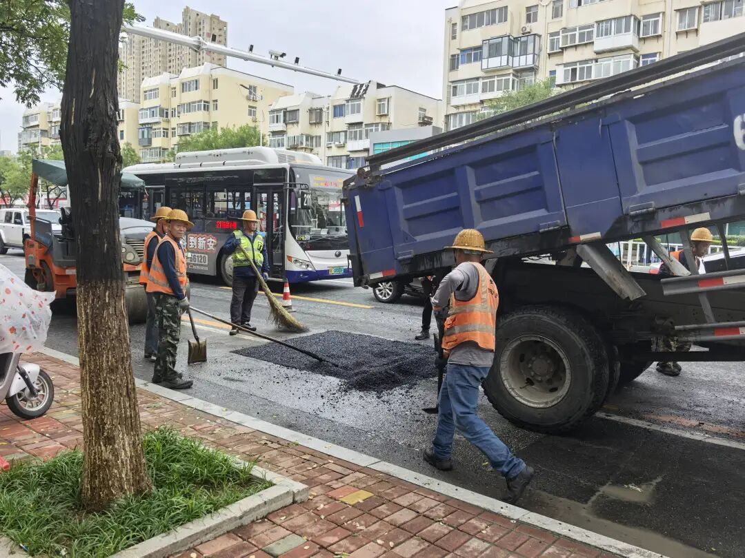 通达社区网格员在巡查时,发现芝罘屯路因雨水冲刷出现多处坑洞,影响居民出行安全。网格员第一时间设置提醒并上报社区、街道及市政部门。市政养护队伍迅速响应,到场设置围挡,高效完成路面填补与压实,短时间内恢复道路平整,赢得居民称赞。