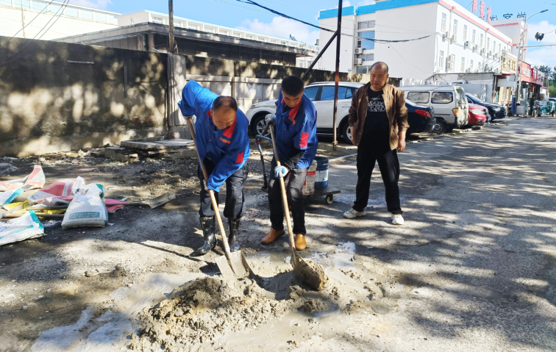 物业组织人员进行实地勘察,辖区单位烟台市芝罘鸿泰实业公司主动承担起企业社会责任,为修路提供水泥、铁板等施工材料,为道路施工提供了有利保障。施工期间,社区网格员全程跟进,疏导交通,保障来往行人、车辆通行安全。