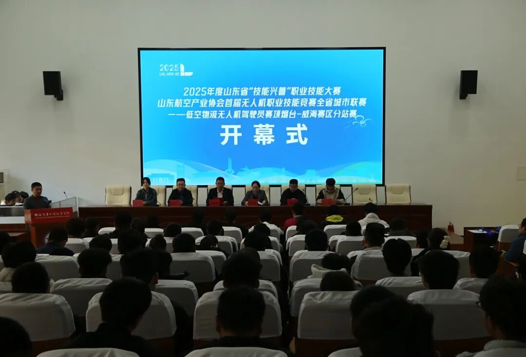 11月1日,2025年度山东省“技能兴鲁”职业技能大赛山东航空产业协会首届无人机职业技能竞赛全省城市联赛-低空物流无人机驾驶员赛项烟台-威海赛区分站赛在烟台汽车工程职业学院举行,电子工程系陈晓宝主任、山东航空产业协会杨侠秘书长、青岛新动航空科技发展有限公司王德凯副总经理、大赛分区负责人周琪、腾讯烟台新工科研究院产教融合部刘振华主任等领导共同出席开幕式,开幕式由无人机专业教研室主任王万君主持。
