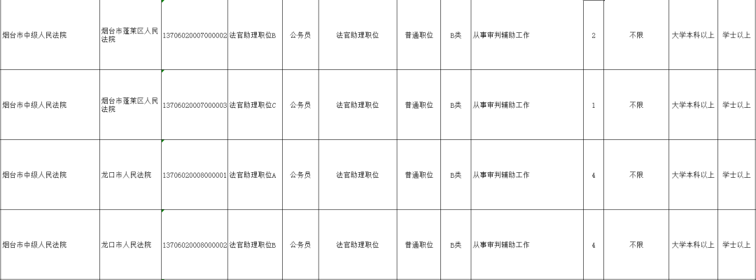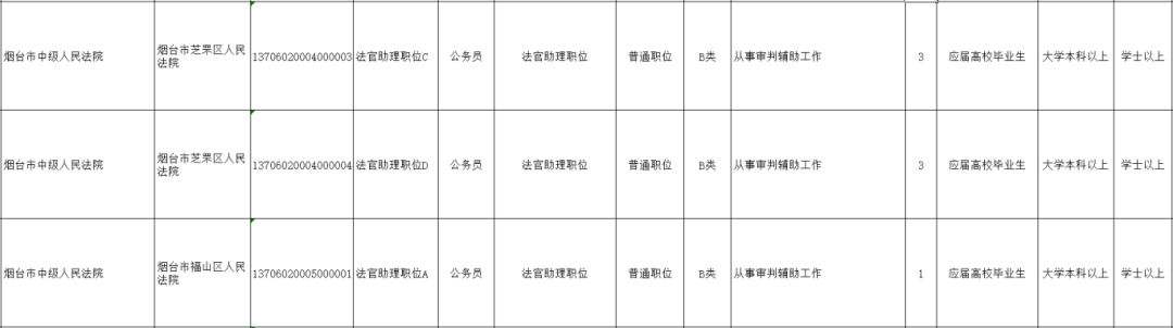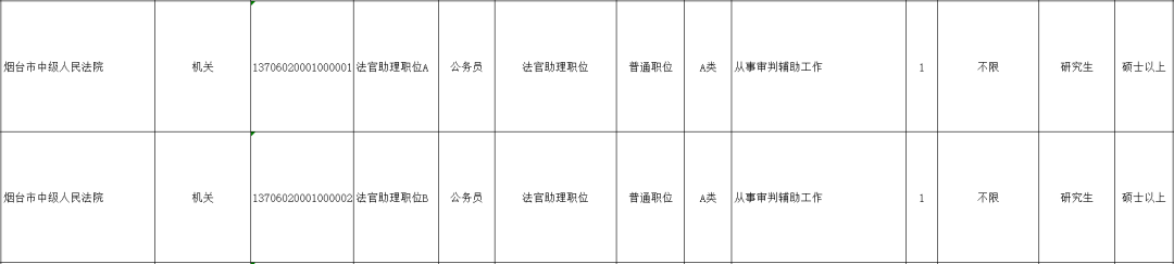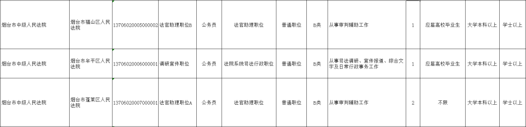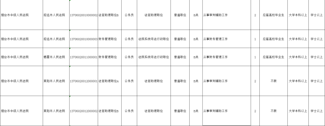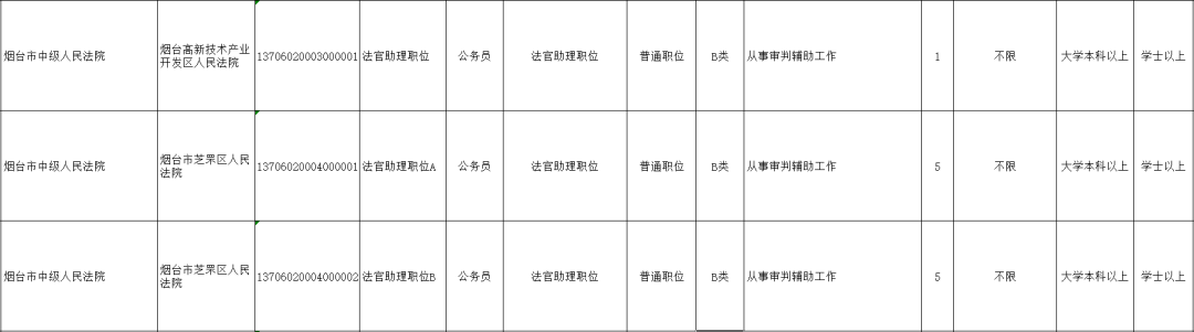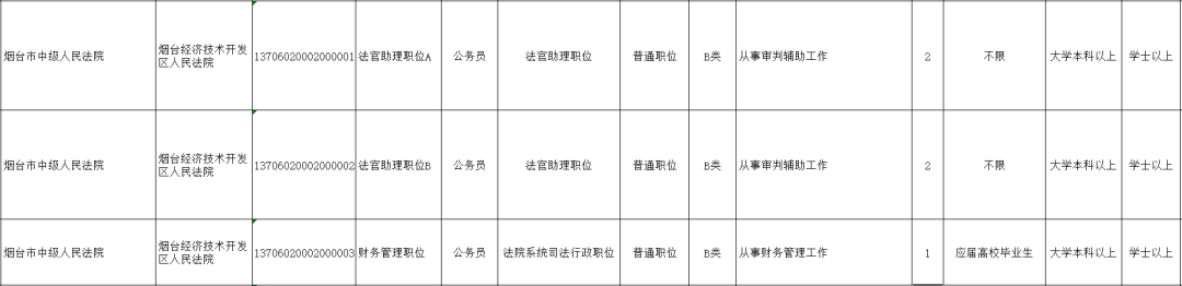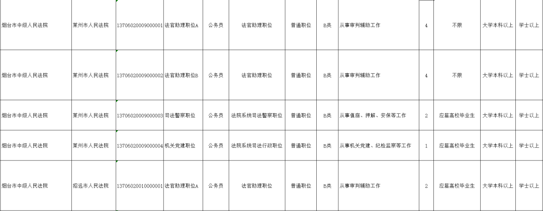 烟台法院招录岗位