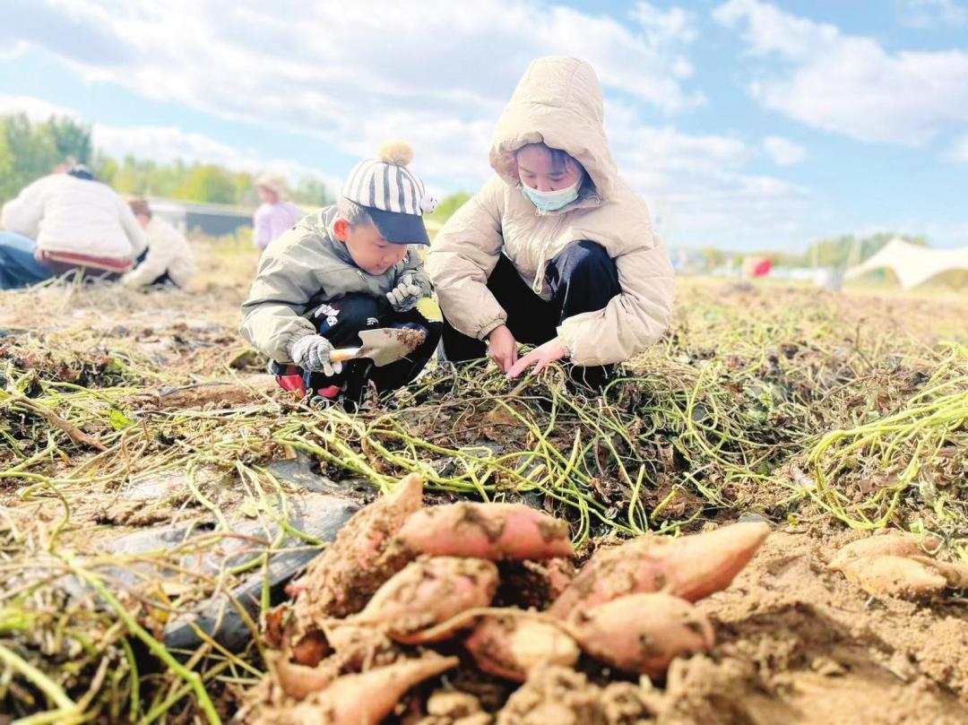 在福山区高疃镇东罗格庄村的原乡清谷自然农场,一场秋日主题的社会实践活动正热闹上演。农场里,一群城市孩子在寻找秋叶,进行拓染树叶画塑封;田地里,学生们在此开展挖地瓜比赛,重现田间热闹场景。