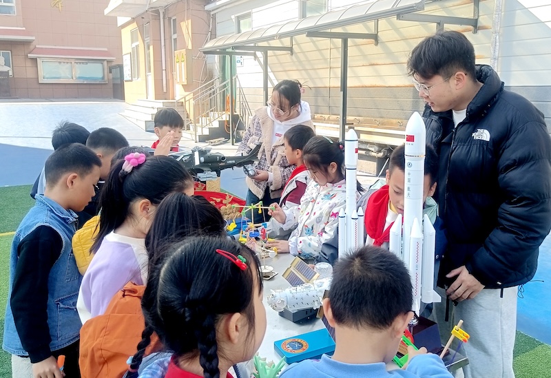 同时,烟台市航模协会的老师开展航天知识宣讲,结合图文讲解航天发展,解答学生疑问,激发探索热情。
