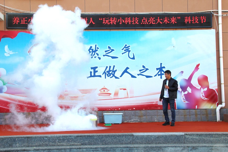 开幕式上,学校领导任建华副书记鼓励学生借科技节探索创新,提升科学素养。随后,烟台市航模协会的数十架无人机,在校园上空灵活盘旋、编队飞行进行表演,点燃了全场热情。科技创智趣学社团的老师通过精彩的科学试验,让同学们近距离感受科学奇妙。