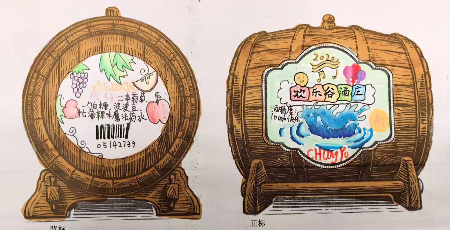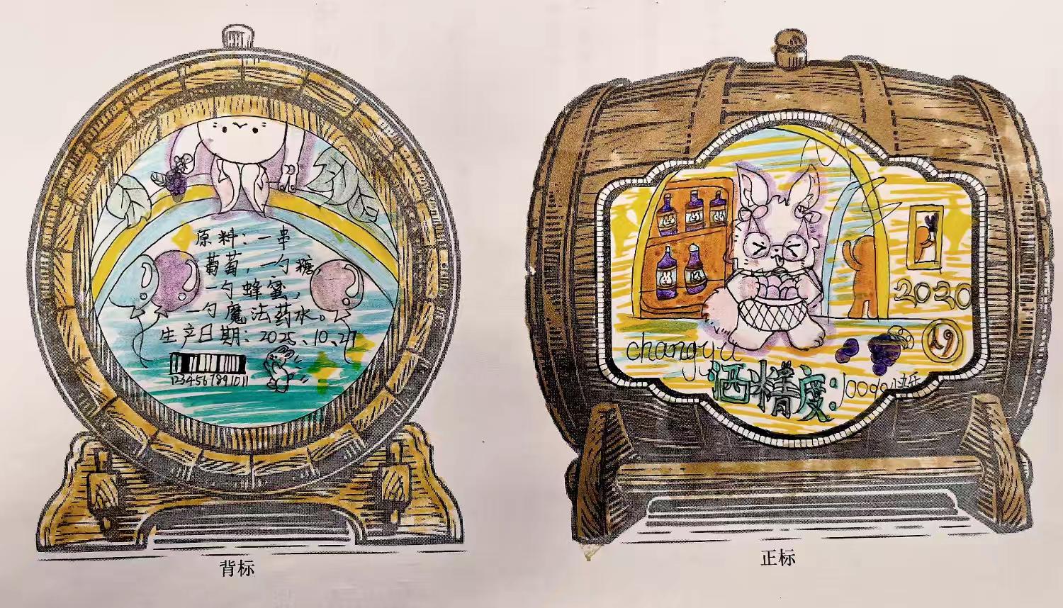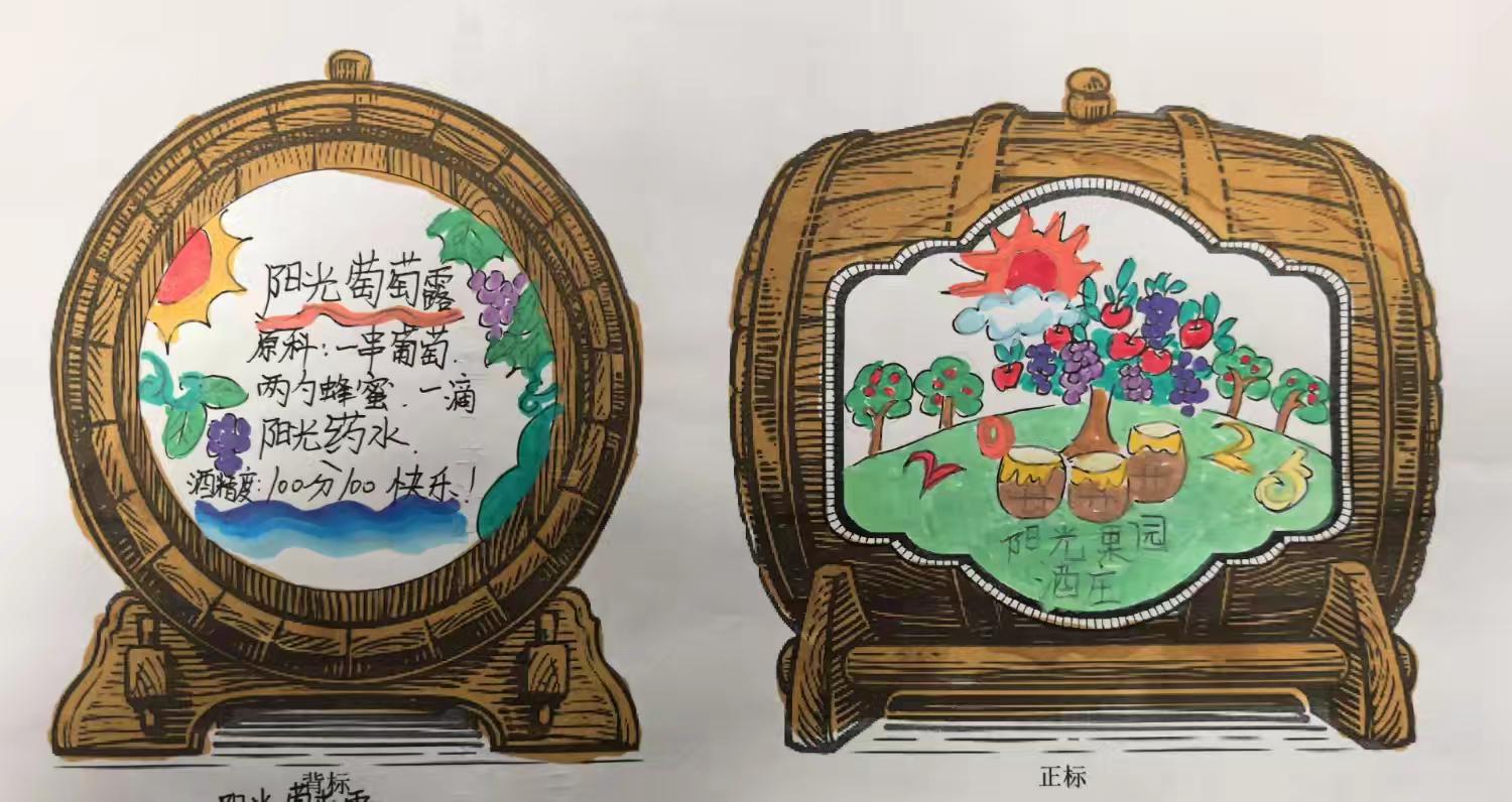 返校后,学生化身“小小设计师”,以“专属果汁酒”为主题设计酒标。他们将博物馆见闻融入创作,勾勒酒窖、绘制葡萄,作品充满童真乐趣与创意。