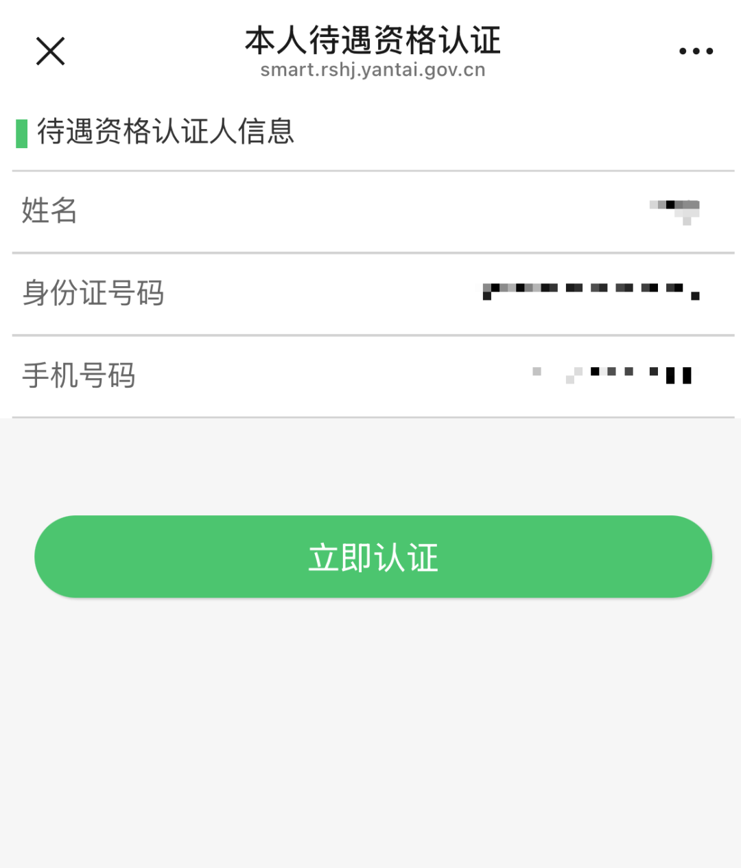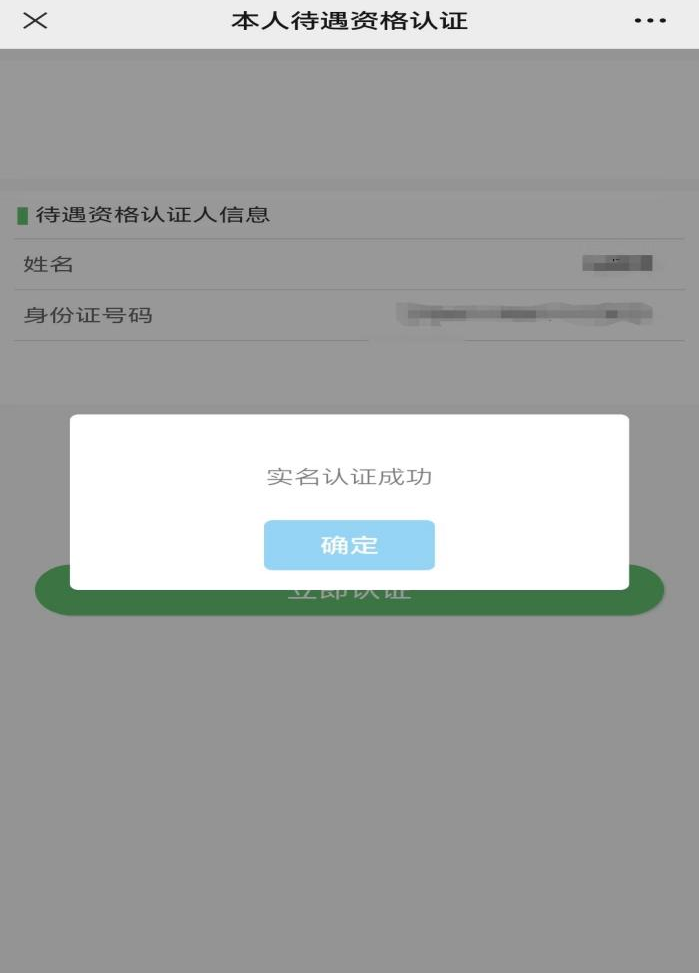 (3)扫脸自助认证。进入公众号,点击下方微人社-待遇资格认证-本人待遇资格认证,根据提示进行人脸识别操作,显示实名认证成功即认证成功。