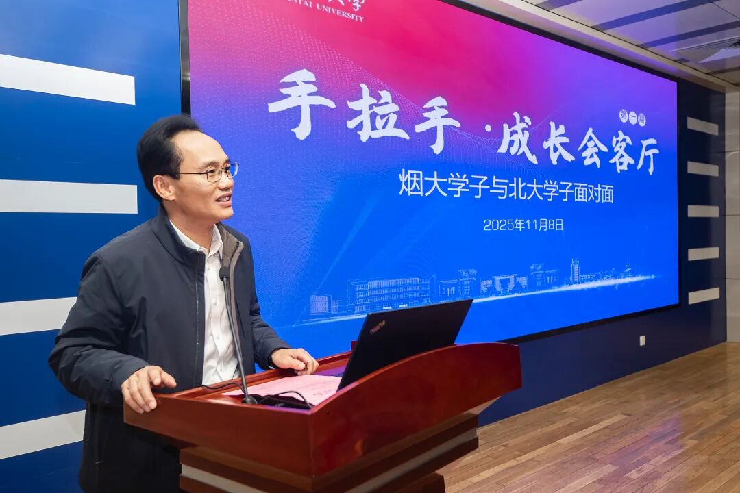 为传承北大、清华援建情谊,搭建优秀学子跨校对话平台,推动校际协同育人再谱新篇,11月8日下午,烟台大学“手拉手・成长会客厅”首期活动举行。四位来自北京大学的优秀博士生跨越山海,与烟大学子面对面畅聊成长、共话未来,在传承校际援建情谊中为青春成长注入奋进力量。党委常委、副校长姚昌出席活动并讲话。