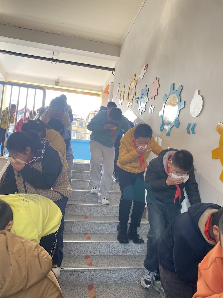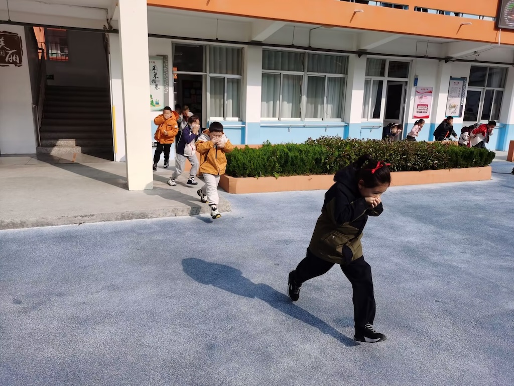 上午10时整,随着急促的消防警报声响起,演练正式开始。全体教职工迅速到位,按照预定方案引导学生有序撤离。同学们在老师的带领下,用湿毛巾捂住口鼻,低姿弯腰,沿着指定路线快速、安静地向操场安全区域疏散。整个过程紧张有序,无拥挤、推搡现象,用时4分钟,全校师生便全部安全撤离至指定地点。