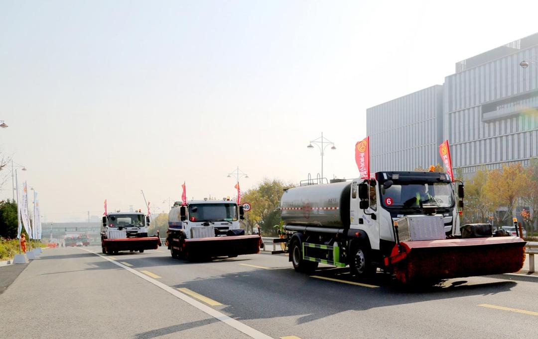 今冬首场雪的脚步越来越近,昨天,市公路事业发展中心为了应对冰雪天气,进行清雪防滑应急演练。 记者 杨春娜 通讯员 王成 魏佳桐 摄