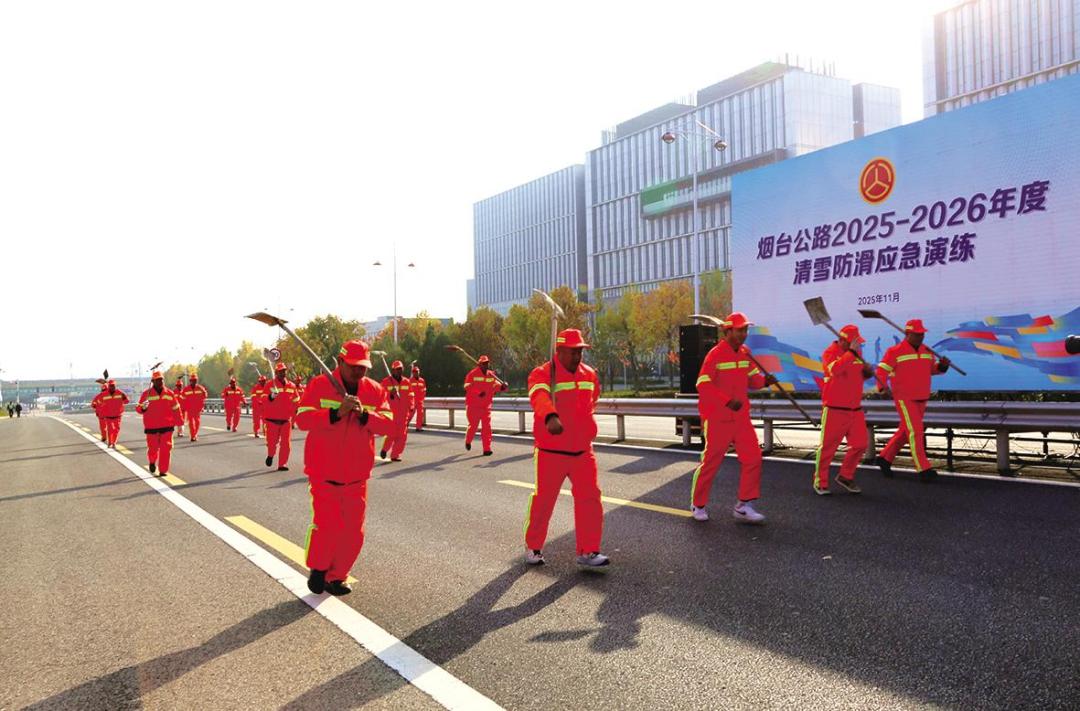 烟台融媒11月13日讯(记者 杨春娜 通讯员 王成 魏佳桐 摄影报道)第一场雪的脚步近了,清雪防滑工作也准备就绪。11月12日,烟台市公路事业发展中心在省道304烟招线组织举行清雪防滑演练,全面部署今冬明春全市普通国省道安全保畅通工作。