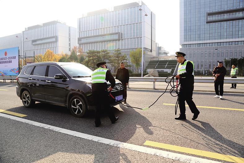 “演练开始!”上午9点,随着演练总指挥一声令下,一场实战演练拉开了清雪防滑工作的序幕。