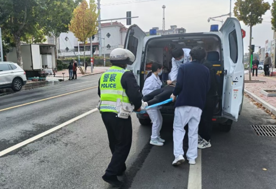 经初步了解,晕倒原因系减肥导致的低血糖。王少蓬迅速询问周边群众是否有糖果或商店,很快,热心市民便自发送来了糖果与糖水。在交警与群众的共同努力下,晕倒路人逐渐恢复少许意识。待120救护车抵达后,王少蓬与刘少东协助医护人员将患者稳妥送上救护车,方才安心离开现场。