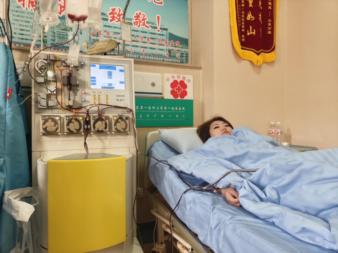 在医院的这几天里,她每天都要注射动员剂,以促使造血干细胞释放到外周血中。面对不适反应,周晓丽始终保持乐观积极的态度。