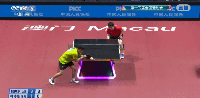 第一局,比赛开始双方就陷入胶着,林诗栋9-4率先拉开比分,樊振东随后连续追分,11-9先胜首局。