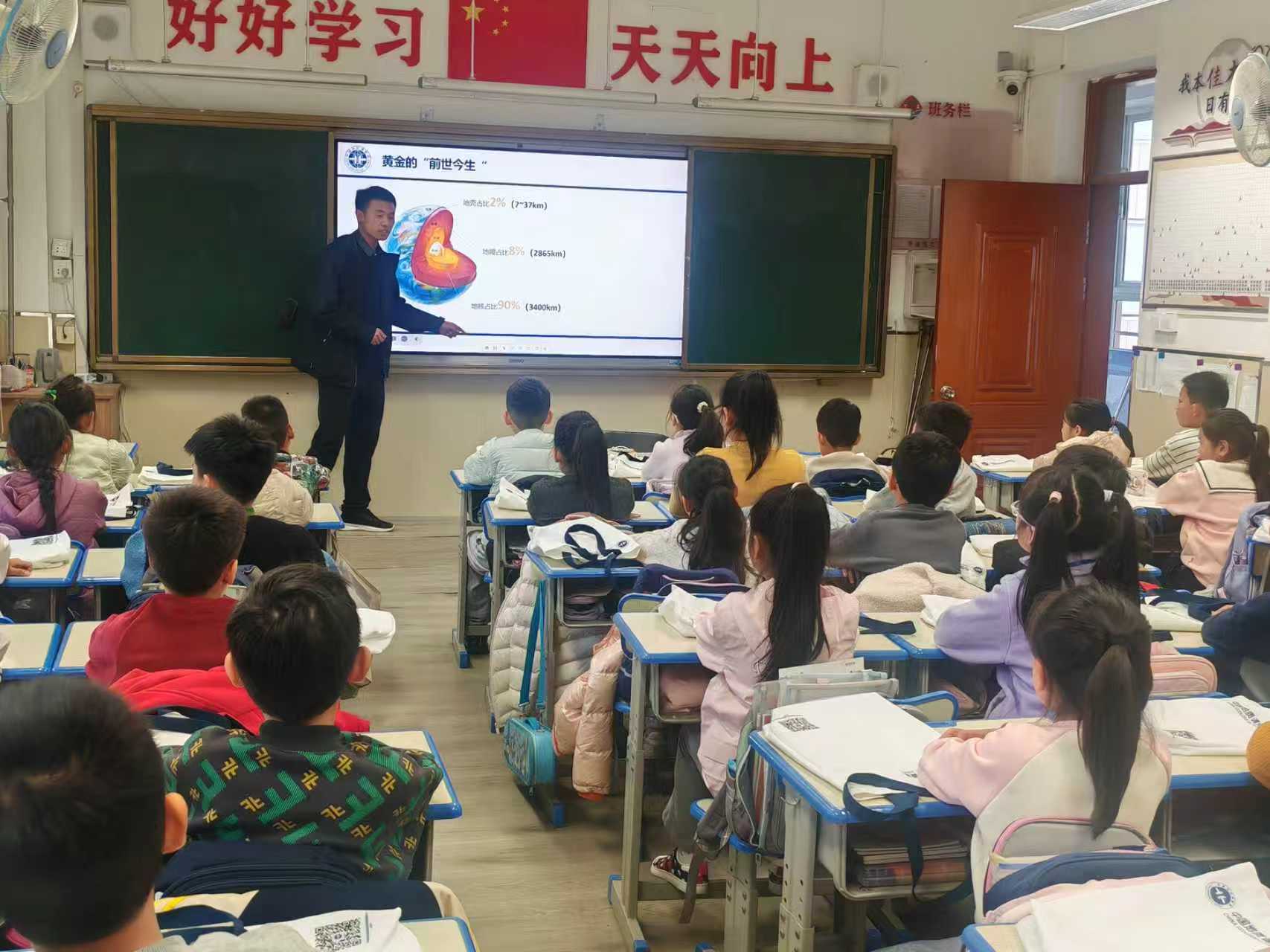 讲座围绕黄金的“前世今生”“超能力”“工作”以及“文化价值”四个方面层层展开,娓娓道来。老师从黄金在地球深处的形成讲起,延伸到人类发现、开采和利用黄金的历程,将原本遥远的地质知识与孩子们的认知世界紧密相连。