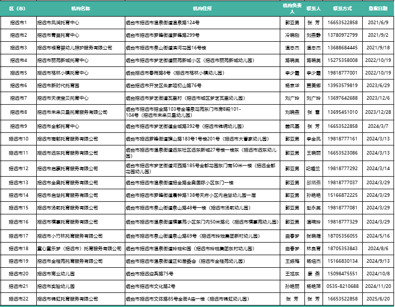 其中,招远市已备案且正常运营的托育机构有22家。
