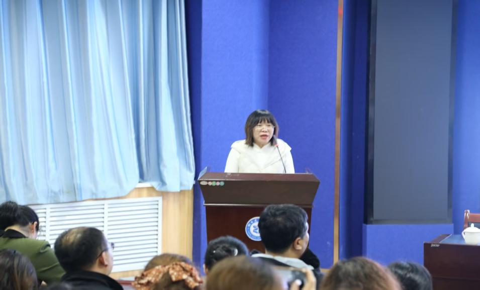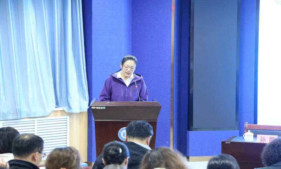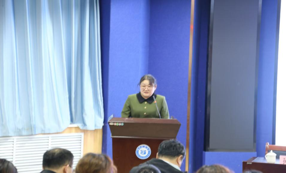 曲晓媛校长作总结讲话。她深刻阐述了“凝心”与“聚力”的时代内涵,强调“凝心”是思想的统一、价值观认同的根本,“聚力”是行动一致、资源整合的关键。曲校长就如何将“凝心聚力”落到实处,转化为推动学校高质量发展的强大动能,提出了明确而具体的要求,包括增强对学校的认同感、加强教学管理、向45分钟课堂要效率、坚持德育为先、纪律保障、强化家校社合育功效等方面。