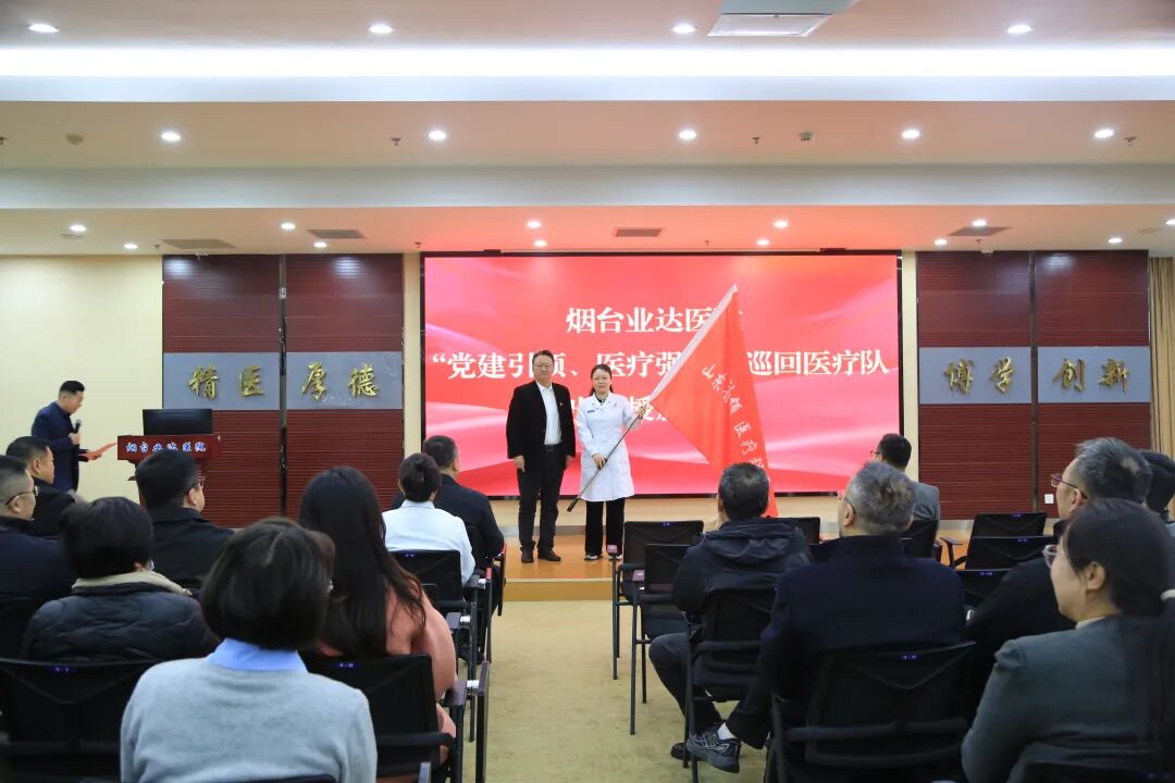 按照国家及省、市卫健委关于建立常态化巡回医疗制度的部署,在烟台黄渤海新区社会事业发展局指导下,烟台业达医院在全区组建首支“党建引领 医疗强基”山东卫生健康巡回医疗队,并于2025年11月18日举行出征授旗仪式,标志着常态化巡回诊疗工作正式启动。