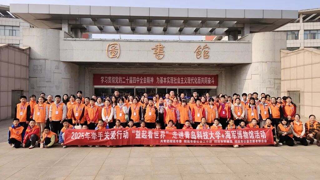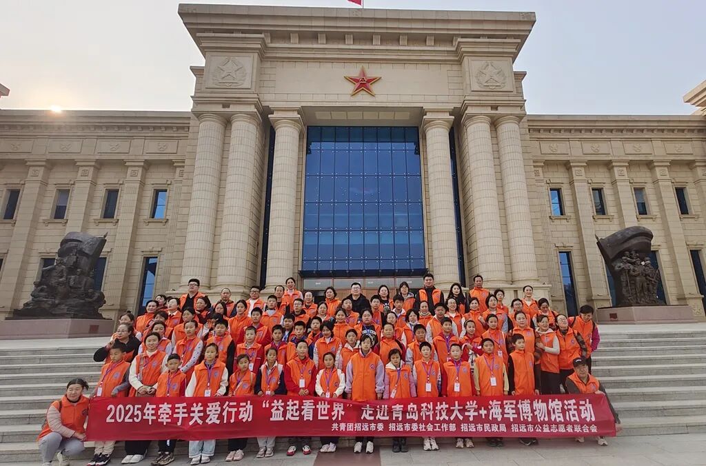 近日,共青团招远市委、招远市妇联、招远市委社会工作部、招远市关工委、招远市民政局等多部门联合招远市公益志愿者联合会,共同组织了2025年牵手关爱行动“益起看世界”主题活动。来自招远市的困境儿童们在志愿者们一对一的陪伴下,走进青岛科技大学与中国人民解放军海军博物馆,在学术殿堂中播种梦想,在红色基地里厚植情怀,开启了一段开阔眼界、启迪心灵的成长之旅。