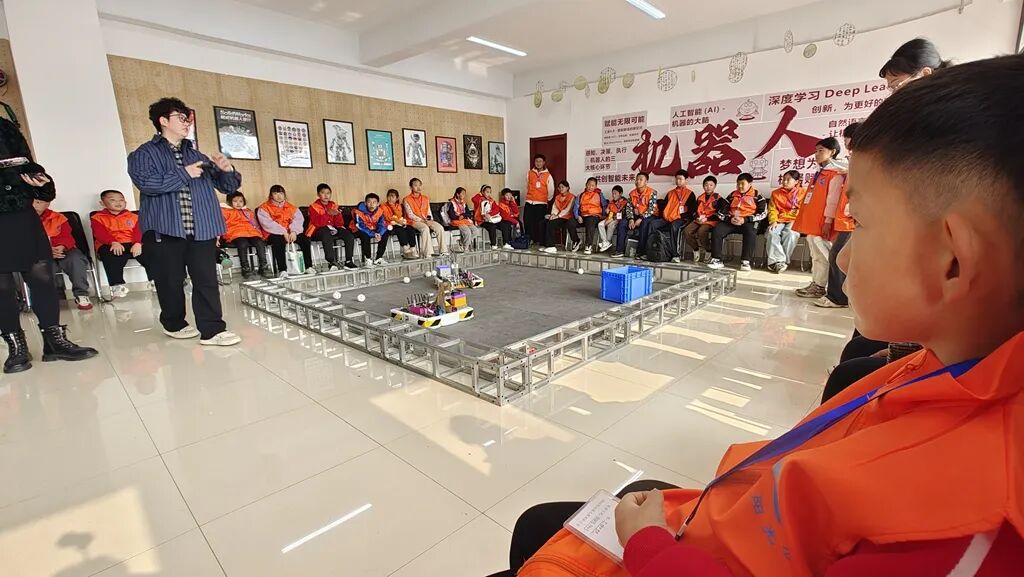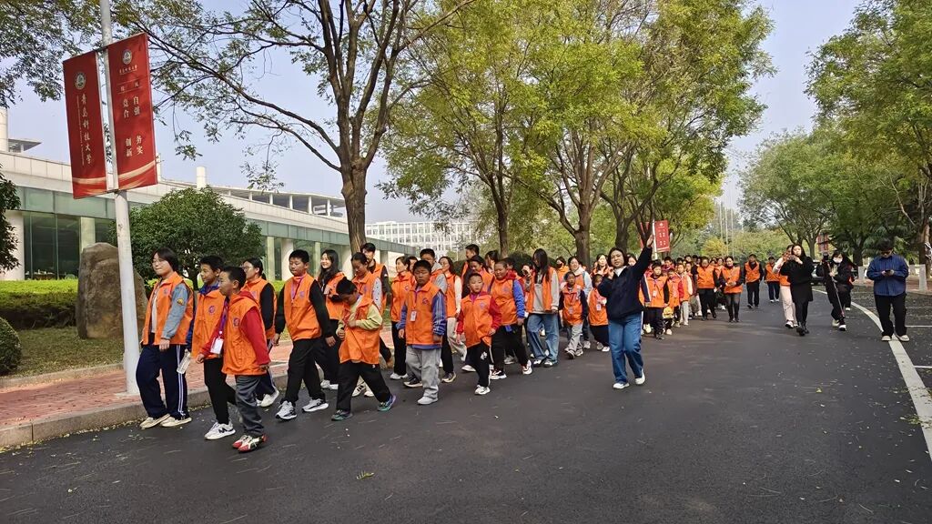 上午,孩子们首先来到青岛科技大学崂山校区,在高校老师的引导和讲解下,孩子们漫步美丽校园,在图书馆、孔子圣像、明德楼前合影留念,感受到青科大校园浓郁的学术氛围和人文特色。随后,老师带领孩子们来到青岛科技大学研学基地,参观了基地12大室内研学工坊,包括AR、VR、3D打印、激光雕刻、编程、无人机、机器人、非遗文创等,在互动体验区,3D影像技术带来的视觉冲击让孩子们连连惊叹,无人机室内实飞演示更是点燃了大家的探索热情,在老师的指导下不少孩子下场实操体验,并主动向老师请教操作原理,眼神中充满求知的渴望。机器人工程实验室里,灵活运转的机器人完成着各种精准动作,让孩子们直观感受到科技的强大力量,也在心中悄悄埋下了“努力学习,探索未知”的种子。
