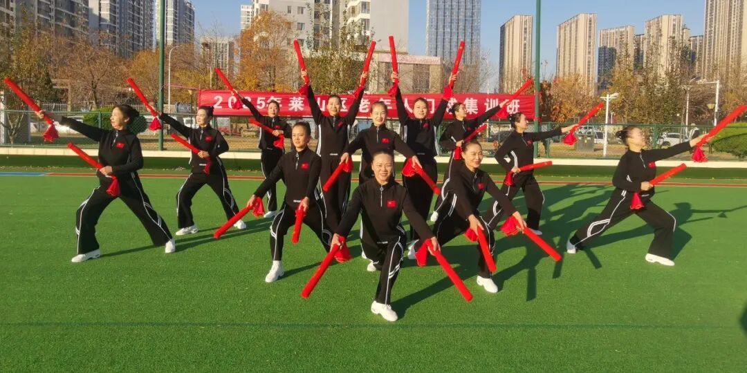 开班前,莱山区老年体协健身队伍献上精彩展演。健身棒操节奏明快、活力昂扬,太极剑招式舒展、刚柔并济,充分展现我区老年人积极健康的精神风貌,赢得现场阵阵掌声。