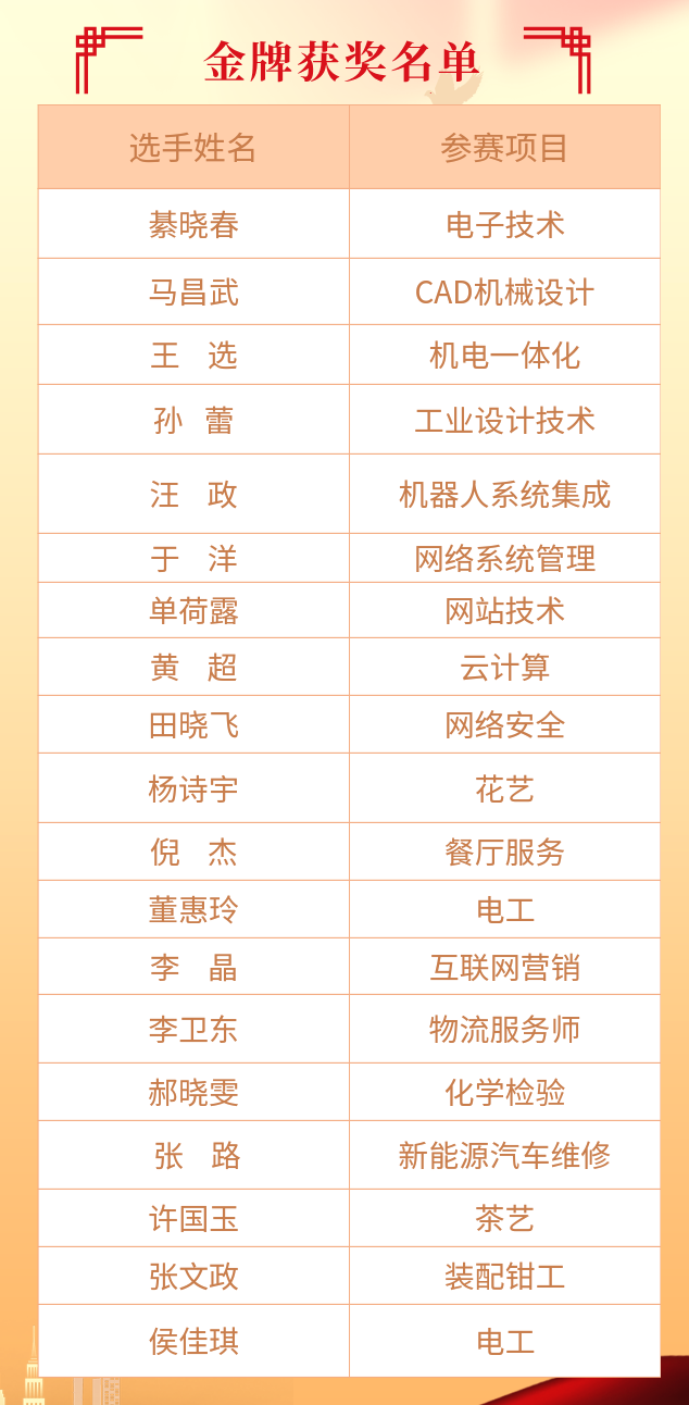 日前,烟台市人社局公布第一届烟台市职业技能大赛获奖名单,烟台职业学院获金牌19个、银牌11个、铜牌7个、优胜奖7个,位居奖牌榜首位,充分展现了学校在技能人才培养方面的综合实力。