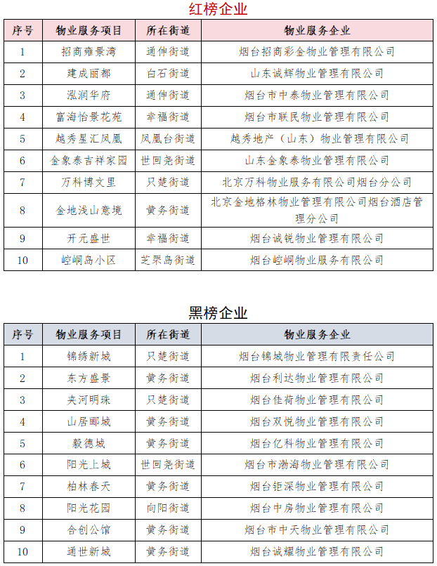 为进一步加强对全区物业服务小区的监督管理,规范物业企业的服务行为,推进落实信用评价体系,结合日常管理、督导检查、投诉处置等情况,现公布2025年度全区物业服务企业“红黑榜”(排名不分先后)。