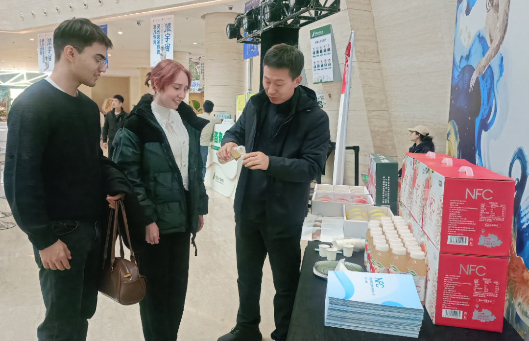 在烟台中惠农业科技有限公司的展台前,新鲜的栖霞苹果、香醇的苹果汁、美味的苹果肉等产品各具特色,吸引了众多市民驻足品尝。大家通过味蕾,认识并记住了这个来自远方的“甜美印象”。