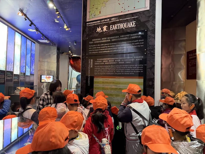 上午9时,研学队伍首站抵达中国地质博物馆(烟台馆)。在“地球家园”展厅,巨型地球仪与动态地壳演化模型前迅速聚集了好奇的目光。讲解员结合3D动画,将抽象的“板块构造学说”转化为直观的动态过程。