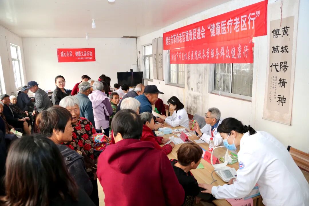 黄城阳村坐落于龙口市东南边陲,村中遍布中共黄县县委旧址、许世友胶东反投降指挥部旧址、黄城阳抗战纪念馆等多处红色遗址。作为胶东地区著名的革命老区,这里素有“小延安”之称。为切实改善老区群众的医疗条件,11月16日上午,在烟台市革命老区建设促进会(以下简称“市老促会”)的组织协调下,烟台市市直机关医院院长、副书记迟荣香、副院长李忠臣带领13人医疗团队,驱车百余公里,将专业的“移动门诊”送到了村民身边。烟台市老促会副会长张丛、龙口市委副书记姜利春、龙口市老促会会长周学军等全程参与并指导活动开展。