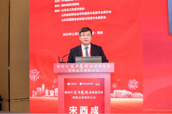 2025年是烟台毓璜顶医院建院135周年。11月23日,“新时代百年医院高质量发展暨精益管理研讨会”在烟台举行。会议由《中国医院》杂志社主办,烟台毓璜顶医院承办,山东省卫生经济协会、山东省医院协会学科建设与发展专业委员会、山东省医院协会标准化管理专业委员会共同协办。烟台市人民政府领导、青岛大学青岛医学院院长任贺、《中国医院》杂志社社长王才有在开幕式上致辞,烟台毓璜顶医院党委书记、院长宋西成主持开幕式。烟台市卫生健康委党组书记、主任包伟,烟台毓璜顶医院田文、刘运祥、杨军、栾材富出席会议。来自省内外80余家医疗机构的近500名医院管理者、专家学者齐聚一堂,以“守正创新 智启未来”为主题,共话医院精益管理新路径,共谋医院高质量发展新蓝图。